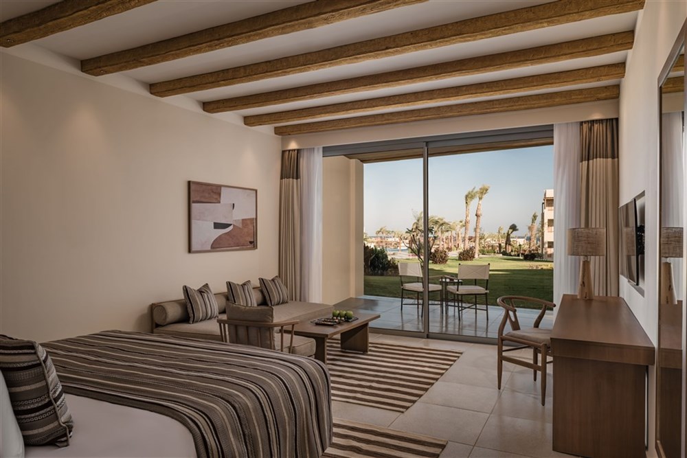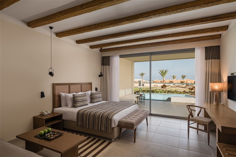 Resort disponuje 287 pokoji a suitami různých kategorií — od standardních superior pokojů přes swim-up varianty až po královský suite.