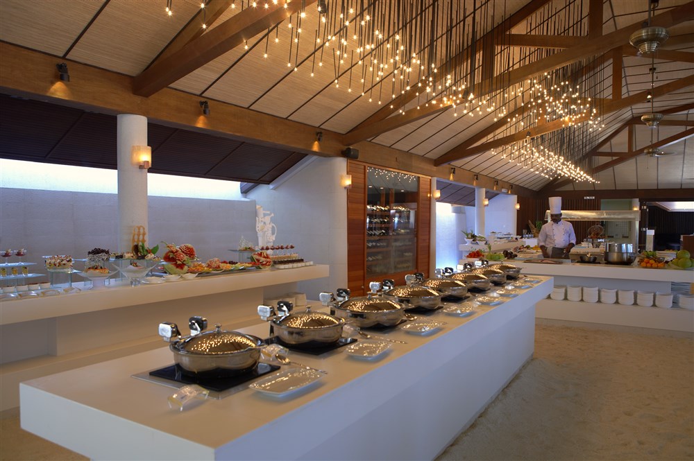 - v ceně: platinum plan (u nás ultra all inclusive) - snídaně, oběd a večeře v hlavní restauraci, 1x za týden možnost jídla v restauraci Tamarind, nápoje (alko a nealko nápoje, džusy, koktejly káva, čaj), a la carte oběd v baru u bazénu, 4 druhy cigaret, francouzské šampaňské, výběr z cca 80 druhů vín z celého světa, vstup do VIP Lounge na letišti, minibar (denně pivo, víno, nealko nápoje, voda a snack)- restaurace a bary: 3 restaurace, 2 bary a lounge
