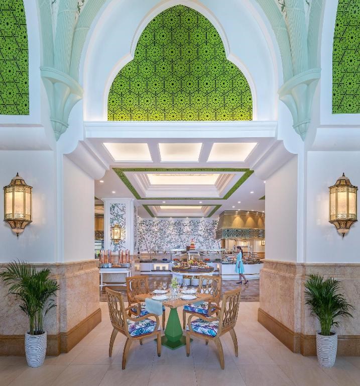 • Snídaně• Polopenze Hotel nabízí pestrou škálu restaurací a barů, které uspokojí různé chutě i příležitosti, od elegantního Lobby Lounge Episodes přes Café Fountain, které je oblíbeným místem při západu slunce u fontán, až po Vendôme, živou restauraci otevřenou po celý den s nabídkou mezinárodní kuchyně, hosté si mohou vychutnat moderní americkou kuchyni v podniku Broadway s atraktivním designem, nebo jedinečný zážitek z vaření na otevřeném ohni v přímořské restauraci Sand & Koal, milovníci fine dining ocení restauraci Talea by Antonio Guida oceněnou michelinskou hvězdou s autentickou italskou kuchyní, nechybí ani kantonská restaurace Hakkasan či moderní indická restaurace Martabaan by Hemant Oberoi, středomořské a blízkovýchodní chutě nabízí Lebanese Terrace inspirovaná libanonským pobřežím, u bazénu si lze vychutnat řeckou kuchyni v restauraci Cascades nebo mexické speciality v restauraci ALMA, a na závěr mohou hosté objevit japonskou gastronomii v restauraci Strawfire by Ross Shonhan, která se zaměřuje na tradiční techniku vaření Warayaki, celý koncept gastronomie v hotelu tak nabízí jednoduchý, ale kvalitní zážitek z různých koutů světa na jednom místě. Aktuální a přesný rozsah zahrnutých outletů a služeb v rámci vašeho stravovacího plánu Vám na vyžádání sdělí recepce hotelu. EP CLUB LOUNGE EP Club Lounge je exkluzivně zpřístupněn a určen hostům ubytovaným v apartmánech a pokojích kategorie Club a poskytuje bezproblémový zážitek již od okamžiku příjezdu, k dispozici je specializovaný tým concierge a komorníků, který je hostům k dispozici nepřetržitě a zajišťuje individuální služby na míru i splnění každého přání, hosté si mohou vychutnat kulinářské speciality připravované zkušenými šéfkuchaři a relaxovat s úchvatným výhledem na Arabské moře ze soukromé pláže vybavené kabanami a lehátky, mezi exkluzivní výhody patří personalizovaný check in, nepřetržitý přístup do club lounge (který je situován přímo u pláže), přednostní rezervace do spa a restaurací a bezplatné využití soukromých místností pro jednání, EP Club dále nabízí prémiovou snídani se šampaňským, nápoje v rámci dne a lehký snack, odpolední čaj, večerní kanapky s koktejly, který dotváří nezapomenutelný zážitek.