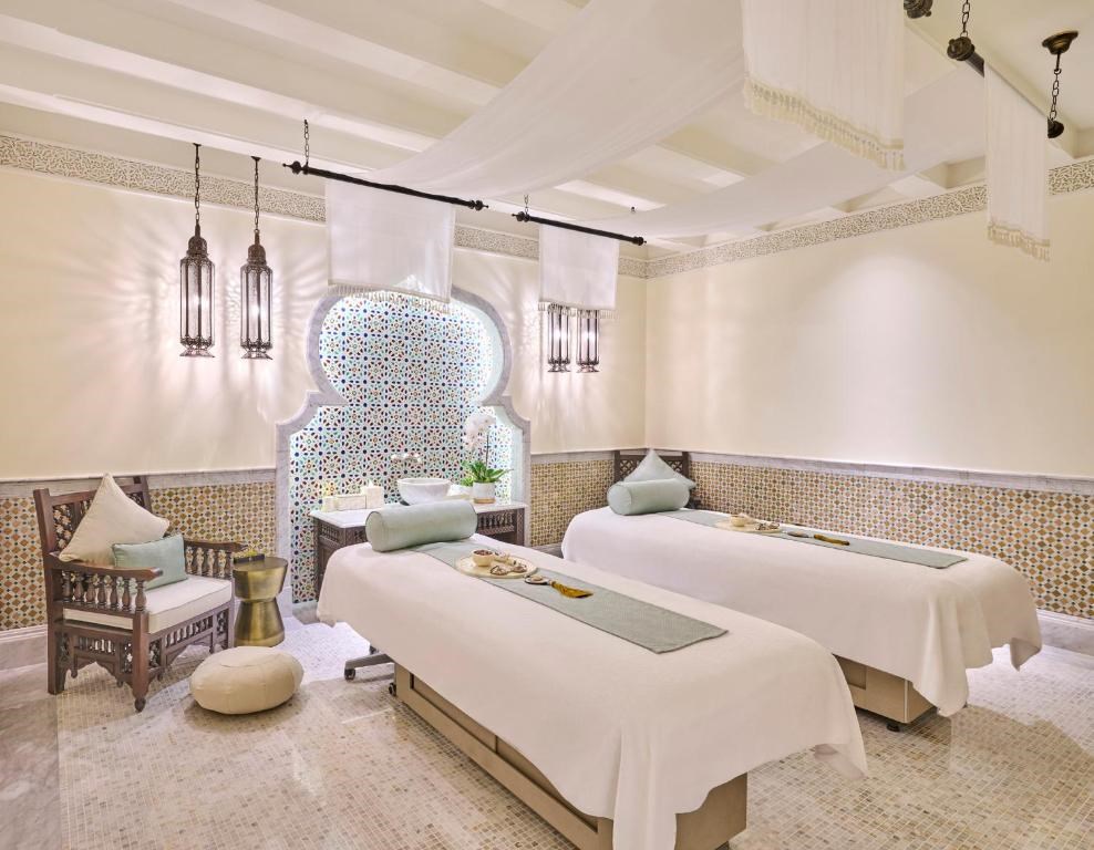 Emirates Palace Mandarin Oriental Abu Dhabi je ikonický luxusní hotel v srdci Abú Dhabí, který představuje dokonalé spojení arabské elegance, moderního komfortu a prvotřídních služeb na světové úrovni, tento exkluzivní pětihvězdičkový resort nabízí ubytování v prostorných pokojích a apartmánech s dechberoucím výhledem na Perský záliv nebo upravené zahrady, hosté si mohou užít soukromou písečnou pláž, několik bazénů včetně relaxačních a rodinných zón, luxusní wellness centrum s tradičními i moderními procedurami, fitness centrum s nejnovějším vybavením a širokou nabídku gastronomických zážitků v oceněných restauracích, které servírují mezinárodní i autentickou blízkovýchodní kuchyni, hotel Emirates Palace Mandarin Oriental Abu Dhabi je ideální destinací pro náročné cestovatele hledající luxusní dovolenou v SAE, romantické pobyty, rodinnou rekreaci i exkluzivní firemní akce, k dispozici jsou špičkové konferenční prostory, svatební služby na míru a osobní concierge servis, díky své prestižní poloze v Abu Dhabi nabízí snadný přístup k hlavním turistickým atrakcím, kulturním památkám i nákupním centrům, Emirates Palace Mandarin Oriental Abu Dhabi je synonymem pro luxusní hotel v Abu Dhabi, prvotřídní služby, exkluzivní ubytování a nezapomenutelný zážitek v Spojených arabských emirátech.